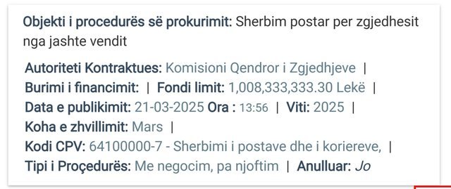 Celibashi ka hapur procedurën për prokurimin e “shërbimit postar për zgjedhësit nga jashtë vendit”, me një fond limit prej 1.008.333.333 lekësh (10 milionë euro). KQZ pritet të zhvillojë negociata me ofruesit e shërbimeve postare në ditët në vijim, duke e klasifikuar këtë shpenzim si “shërbim i postave dhe i korrierëve”.