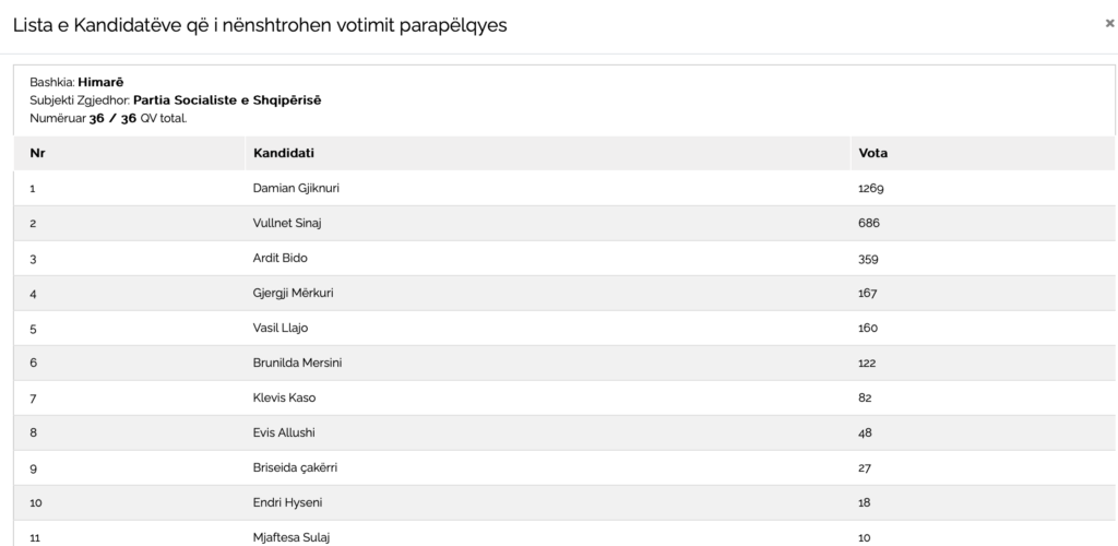Rezultatet për votat personale në Bashkinë e Himarës kanë zbuluar jo vetëm renditjen e kandidatëve të Partisë Socialiste, por edhe një prapaskenë politike të ngarkuar me zhgënjim dhe lëvizje të heshtura taktike siç janë thikat pas shpine.