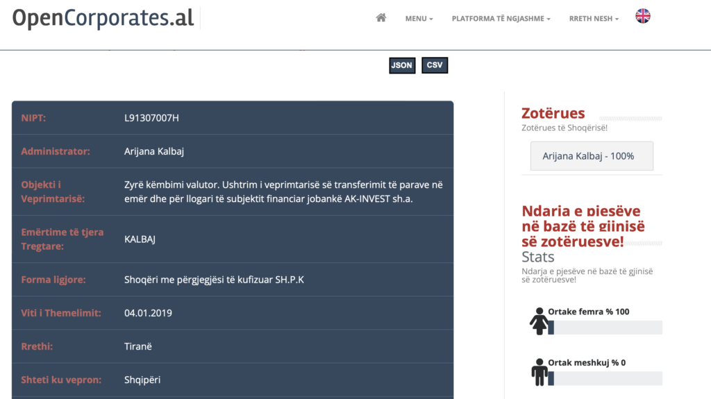 Mes të tjerash, kjo kompani ka deklaruar në dokumentet e dorëzuara në QKB se bën edhe transferimin e shumave monetare në emër dhe për llogari të AK INVEST sh.a. Nuk ka të dhëna që kompania në fjalë është pjesë e skemës në fjalë, pavarësisht deklarimeve të Kalbaj shpk.